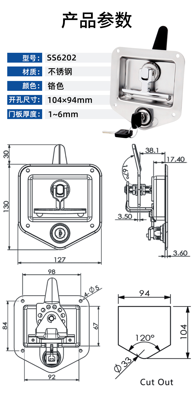 上一篇 : 房车拖车T型锁 不锈钢面板平面锁 工具箱锁折叠把手锁
